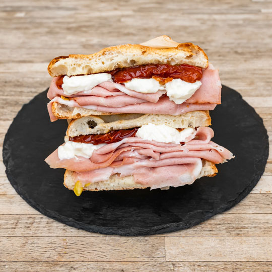 MALTA π 12.00 β¬ Roast-Beef, Cipolla Rossa, Grana Padano e PomodoriLatte e Derivati LEGGERA π 11.00 β¬ Arrosto Di Tacchino, Grana Padano, Rucola e PomodoriLatte e Derivati BRITANNIA π 12.00 β¬ Roast- Beef, Pomodori Conditi e Mayonese Al LimeUova e derivati LEGGERA FIT π 11.00 β¬ Arrosto di Tacchino, Hummus, Pomodori Conditi e Cipolla RossaLatte e Derivati CANTABRICA π 10.00 β¬ Acciughe del Cantabrico, Mozzarella e Mayonese al LimePesce FOCE 10.00 β¬ Prosciutto Cotto, Stracciatella, PatΓ© di OliveLatte e Derivati PIAZZA NETTUNO 11.00 β¬ Culatta, Stracchino e RucolaLatte e Derivati ROMAGNA 9.00 β¬ Mortadella, Stracchino e Pomodori SecchiLatte e Derivati