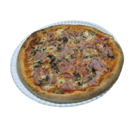 pomodoro, mozzarella, prosciutto cotto, funghi, carciofi, olive